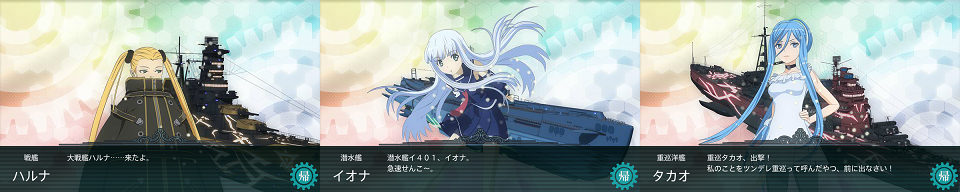 雷2航1戦2潜(イオナ)1でそれなりに頑張っていたけど長門をハルナに変えた途端もう・・・。